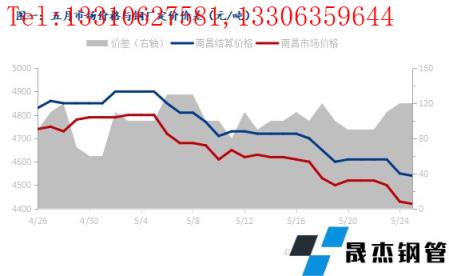 5月份南昌建筑厚壁無(wú)縫鋼管市場(chǎng)價(jià)格一路下行,具體來(lái)看,4月26日至5月25日期間南昌建筑厚壁無(wú)縫鋼管現(xiàn)貨市場(chǎng)最高價(jià)格為4800元/噸,最低價(jià)格為4420元/噸,較上月最高價(jià)與最低價(jià)分別下降70元/噸和300元/噸,期間市場(chǎng)價(jià)格單邊下行振幅為380元/噸。