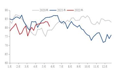 首先,供給端方面,據調研顯示,截至2022年5月27日,37家熱軋板卷生產企業中,無縫厚壁鋼管廠家產能利用率為80.87%,能夠從圖2可以觀察到2022年1-5月份,熱軋產能利用率是低于2021年同期水平,因此無縫厚壁鋼管廠家熱軋產量給到市場的供給壓力是在持續減弱,對于熱軋價格起到了一定的支撐作用。再來看下無縫厚壁鋼管廠家的冷軋產能利用率, 2020年與2021年冷軋產能利用率均值分別為77.96%與81.05%。截至2022年5月27日,29家冷軋板卷生產企業中,冷軋產能利用率為83.04%,從年同比數據對比之下,能夠反映出冷軋產能利用率已經達到相對飽和狀態。