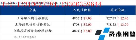 5月30日普鋼絕對(duì)價(jià)格指數(shù)變化:綜合指數(shù)5035.84,上漲9.17;螺紋鋼指數(shù)4780.88,上漲16.59;線(xiàn)材指數(shù)5186.76,上漲15.84;熱軋板卷指數(shù)4844.08,上漲19.31;冷軋板卷指數(shù)5335.12,上漲7.83;中厚板指數(shù)5057.89,上漲3.06。