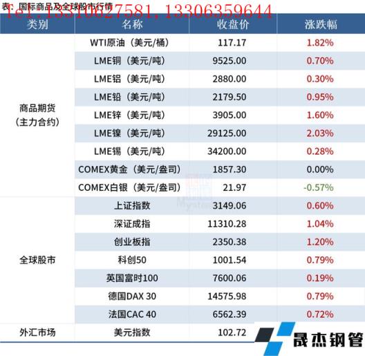 ◎首席汪建華:展望6月鋼鐵市場(chǎng),雖然市場(chǎng)仍有下行壓力,但還是有望出現(xiàn)修復(fù)性反彈。在經(jīng)歷充分調(diào)整后,隨著疫情管控逐步好轉(zhuǎn),各項(xiàng)政策的落地和逐步發(fā)力,厚壁無(wú)縫鋼管需求有望逆季節(jié)回升,處于近1年來(lái)低位的鋼價(jià),將迎來(lái)修復(fù)性反彈,并拉開(kāi)下半年鋼價(jià)反彈的序幕。詳情>>