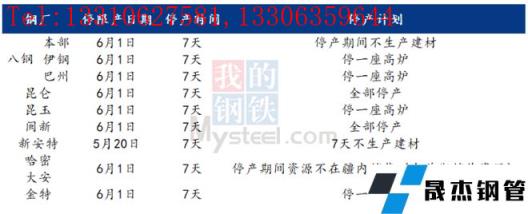 根據(jù)2022年5月中旬在烏魯木齊召開的新疆鋼鐵行業(yè)健康運行小組會議,后期經(jīng)疆內(nèi)各無縫厚壁鋼管廠家共同溝通,確定最終停減產(chǎn)方案:決定停限產(chǎn)開始時間調(diào)整為2022年6月1日,停產(chǎn)時間統(tǒng)一調(diào)整為7天,后期視情況做出相應(yīng)調(diào)整。