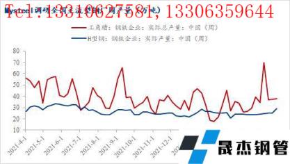 5月隨著原料價格繼續趨弱運行,無縫厚壁鋼管廠家整體開工和產能利用率呈現增長趨勢,不過鑒于當前市場形勢環境,鋼企在近期也陸續下調出廠售價,因此利潤方面擴張并不明顯。如圖,5月全國型無縫厚壁鋼管廠家產量迎來上升,尤其是工角槽無縫厚壁鋼管廠家周產量大幅攀升,突破近一年峰值。最近調研數據顯示,全國工角槽開工率為36.9%,產能利用率為30.63%;全國H型鋼開工率為67.74%,產能利用率為54.15%。