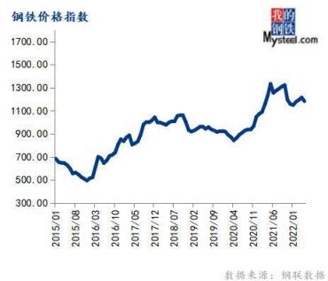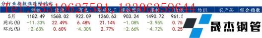 5月份鋼鐵價格指數(shù)為1182.49,環(huán)比下跌2.63%,同比下跌11.33%。