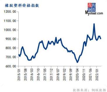 5月份橡膠塑料價格指數(shù)為903.24,環(huán)比下跌2.66%,同比下跌1.08%。