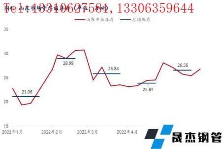 山東市場(chǎng)中厚板庫(kù)存最近一期(6月2日)調(diào)研數(shù)據(jù)為26.81萬(wàn)噸,周環(huán)比上漲1.37萬(wàn)噸,較上月均值上漲0.25萬(wàn)噸。