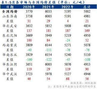 據(jù)鋼聯(lián)數(shù)據(jù)對(duì)各區(qū)域主流市場(chǎng)及全國(guó)均價(jià)的5月價(jià)差數(shù)據(jù)分析:山東、東北今年價(jià)格較全國(guó)平均水平有所抬升,華北、華南、華東、華中較全國(guó)平均水平有所下降;