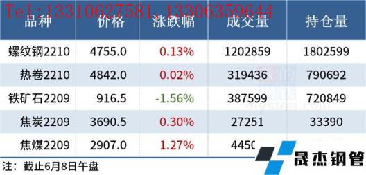 免責聲明:本網站(山東聊城晟杰無縫鋼管廠www.82912.cn)刊載的“2022年06月08日午報:鋼價漲跌互現,鐵礦石期貨下挫”等均源于網絡,版權歸原作者所有,且僅代表原作者觀點,本文所載信息僅供參考。轉載僅為學習與交流之目的,如無意中侵犯您的合法權益,請及時聯系刪除。本網站刊登此篇文章并不意味著本站贊同其觀點或證實其內容的真實性,我們不對其科學性、嚴肅性等作任何形式的保證。如果侵犯了您的版權,請盡快聯系我們予以撤銷,謝謝合作!