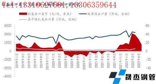 而在板帶箔出口方面,我們從下圖數(shù)據(jù)可以看到,在鋁卷出口利潤為負的時候,板帶箔仍維持較高水平的出口量。