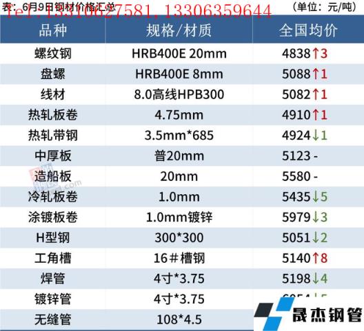 建筑厚壁無縫鋼管:6月9日,全國31個主要城市20mm三級抗震螺紋鋼均價4838元/噸,較上個交易日漲3元/噸。產業數據方面,本周螺紋鋼產量小幅增加,庫存方面,雖然廠庫下降,但社庫出現回升,同時在雨季影響下,需求端整體低迷。短期來看,目前市場需求恢復狀況不及預期,南方汛期疊加高考日影響,下游需求整體低迷,且投機性需求較差。因此短期在弱基本面的壓力下,預計10日國內建筑厚壁無縫鋼管價格或將繼續窄幅震蕩為主。