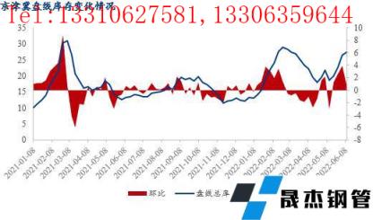 解析:本周京津冀主要建筑厚壁無縫鋼管市場螺紋庫存增加8.07萬噸,盤線庫存增加3.42萬噸,其中北京市場螺紋庫存增加5.48萬噸,盤線庫存增加1.09萬噸。本周京津冀無縫厚壁鋼管廠家產量39.07萬噸,周環比增加4.2%,無縫厚壁鋼管廠家暫無產線檢修、復產,主要是鐵水的傾斜變化導致。外來無縫厚壁鋼管廠家資源來看,凌鋼、西林、新撫等對京津冀發貨較好,加之需求端方面,北京、天津市場受疫情沖擊,需求表現偏弱,因此在供應尚可、需求表現不佳的情況下,市場庫存持續增加。從品種上看,本周線盤的庫存占比繼續上升,為17.78%。各城市來看,目前邯鄲、承德市場盤線庫存偏高,在34%以上;其他市場盤線庫存占比基本位于合理區間。因京津冀建材市場盤螺價格居于高位,外來無縫厚壁鋼管廠家資源向京津冀發貨積極性較高,且與京津冀區域的河鋼售價相差200元/噸左右,預計短期河鋼盤螺-螺紋鋼價差或有所收窄。