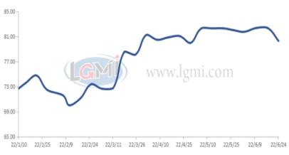 據網調研數據顯示:截至6月22日,唐山區域高爐產能利用率78.89%,環比上月下跌0.11個百分點;鐵水日均產量較上月減少0.05萬噸。