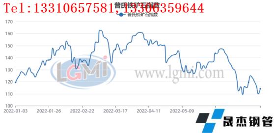 6月份以來,伴隨著國內(nèi)厚壁鋼管價格的大幅下挫,進(jìn)口鐵礦石市場也出現(xiàn)了明顯的下跌行情,截至7月5日,普氏鐵礦石指數(shù)跌到了114.3點(diǎn),較6月初的高點(diǎn)(147.3點(diǎn))下跌了22.4%,也創(chuàng)下了年內(nèi)的最大單月跌幅(詳見圖1)。