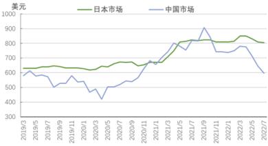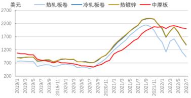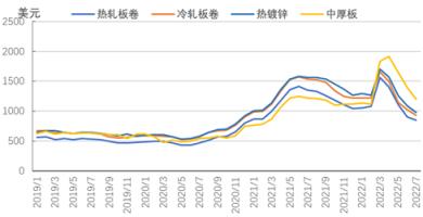 圖5 2019-2022年亞洲扁平材市場(chǎng)價(jià)格走勢(shì)圖