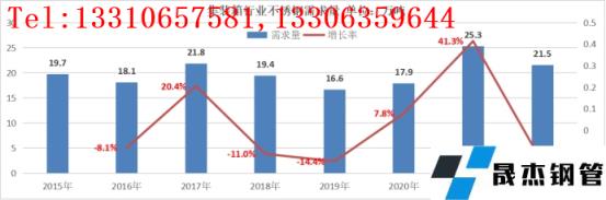 | 各種類集裝箱對(duì)不銹鋼需求 集裝箱制造行業(yè)用不銹鋼需求牌號(hào)包括316L、304、304L、430、410L、409L、BN4、443、D-7、QN1803、2205高強(qiáng)度雙相不銹鋼等。其中BN4、443、D-7、QN1803等品種系近年無縫鋼管廠家為替代304鋼種而研發(fā)的新產(chǎn)品,其中BN4目前為市場(chǎng)廣泛認(rèn)可,推廣使用較快。冷軋不銹鋼需求厚度范圍為0.5mm-3.0mm,寬度范圍為1000 mm -1500 mm,表面等級(jí)包括2B、2D等;熱軋不銹鋼需求厚度范圍為4.0mm-8.0mm,寬度范圍為1000mm-2000mm,表面等級(jí)包括2E、NO.1等。 五、集裝箱行業(yè)的不銹鋼需求量和增長(zhǎng)趨勢(shì)統(tǒng)計(jì)